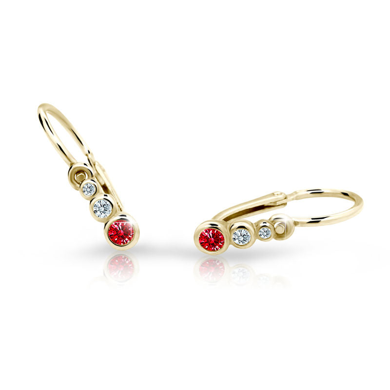 Detské náušnice Danfil C2255 zo žltého zlata, Ruby Dark, zapínanie brizura