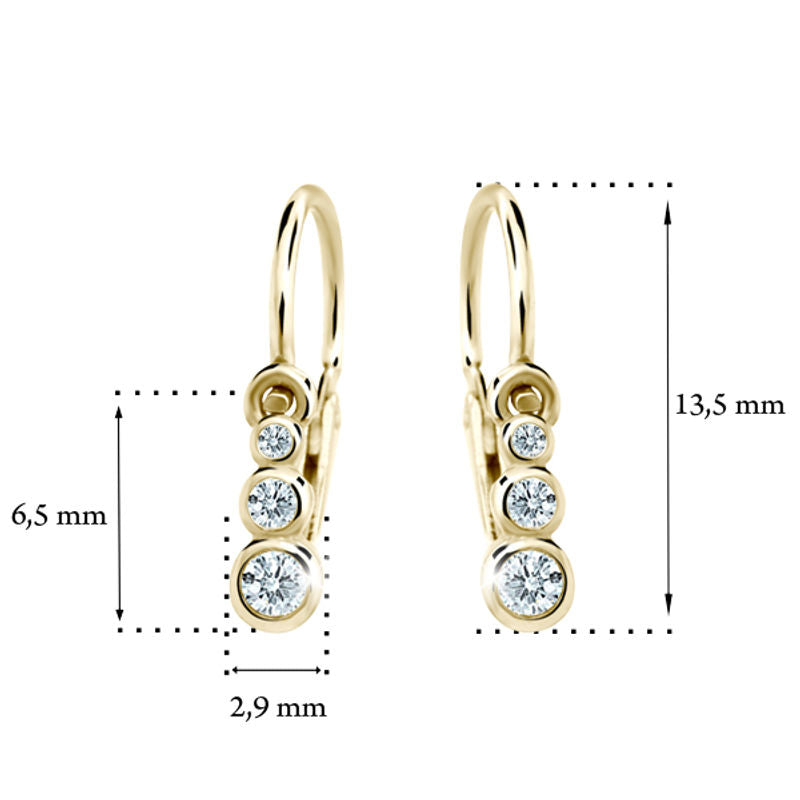 Zapínanie náušnice brizúra je ideálnou voľbou pre bábätká. Náušničky sú balené v pôvabnej darčekovej škatuľke v tvare pyramídky. Náušnice sú krásnym darčekom na krstiny.