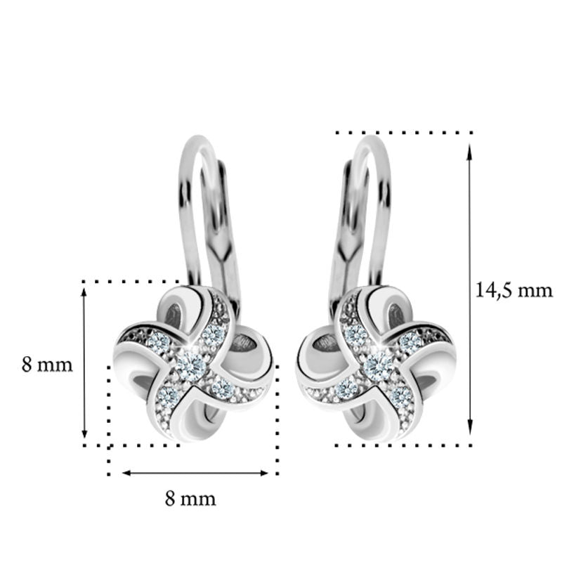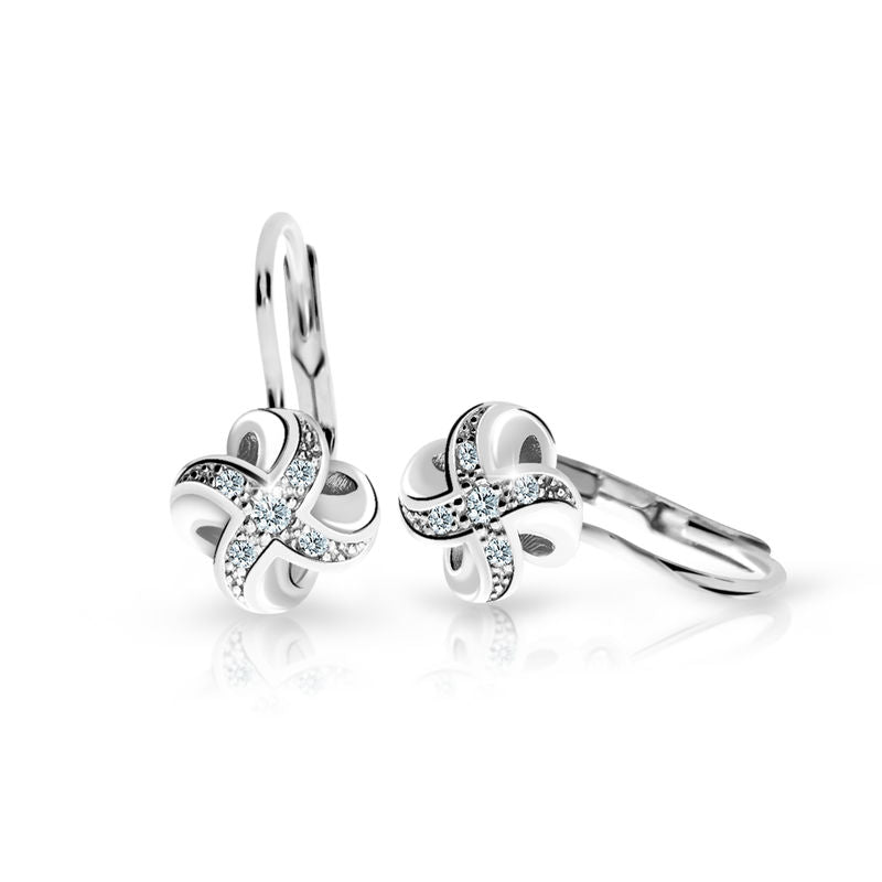 Detské náušnice Danfil C2262 z bieleho zlata, White, zapínanie klapka