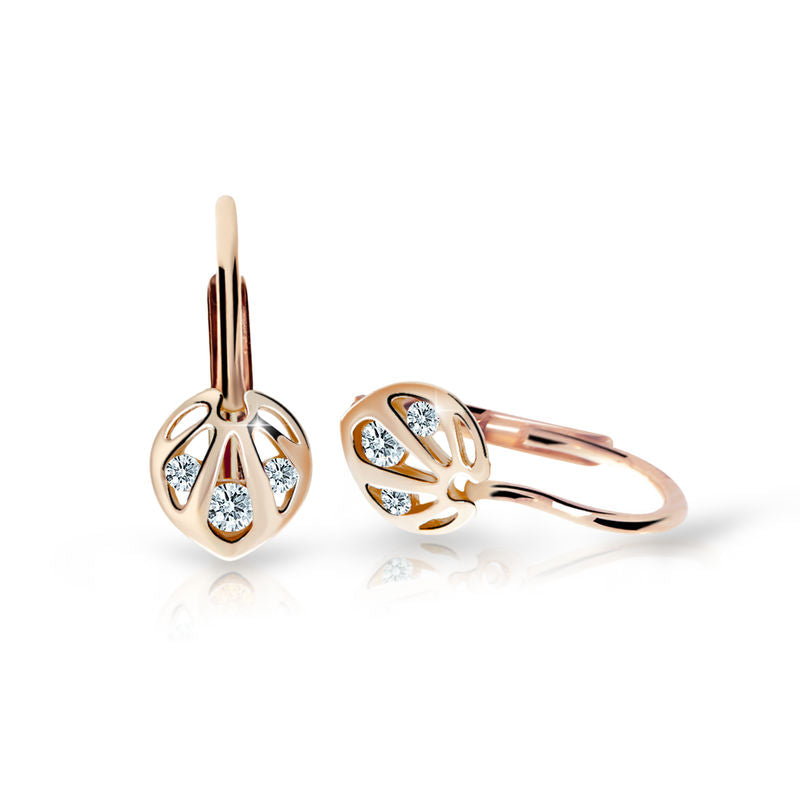 Detské náušnice Danfil C2265 zo ružového zlata, White, zapínanie klapka