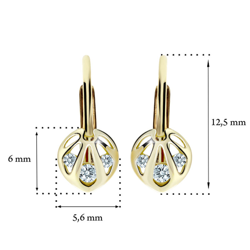 Detské náušnice Danfil C2265 zo žltého zlata, White, zapínanie klapka