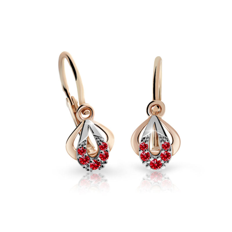 Detské náušnice Danfil C2270 zo ružového zlata, Ruby Dark, zapínanie brizura