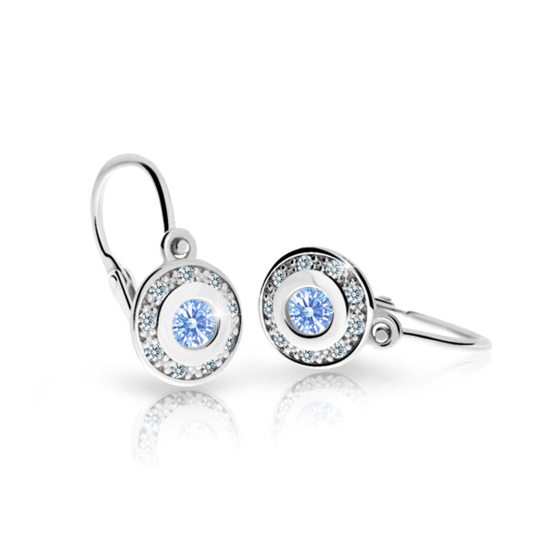 Detské náušnice Danfil C2400 z bieleho zlata, Arctic Blue, zapínanie brizura