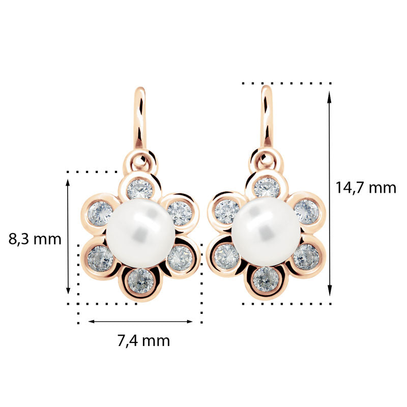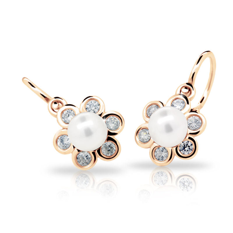 Detské náušnice Danfil C2489 zo ružového zlata, s perlami, zapínanie brizura