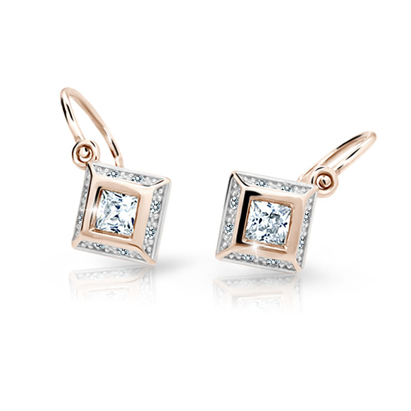 Detské náušnice Danfil C2501 zo ružového zlata, White, zapínanie brizura