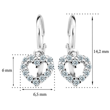 Detské náušnice Danfil hearts C2157 z bieleho zlata s červenými, malinovými, ružovými a bielymi zirkónmi, mosadzné zapínanie