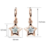 Detské náušničky v tvare hviezdičky so zapínaním typu brizúra sú vyrobené z ružového 14k zlata a osadené tmavo zelenými kamienkami. Zlaté náušnice majú puncovú značku 585/1000 od štátneho puncového úradu. Tento typ zapínania považujeme za jeden z najbezpečnejších a je najvhodnejší ako prvé náušničky pre bábätko. Všetky rozmery sú podrobne rozkreslené na podpornej fotografii. Ku každým náušničkám je možné vybrať si aj ladiaci prívesok s retiazkou.