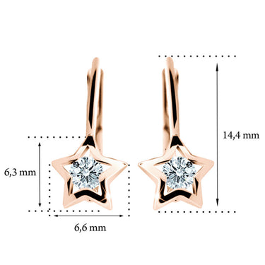 Detské náušnice Danfil hviezdičky C1942 zo ružového zlata, Ruby Dark, zapínanie klapka
