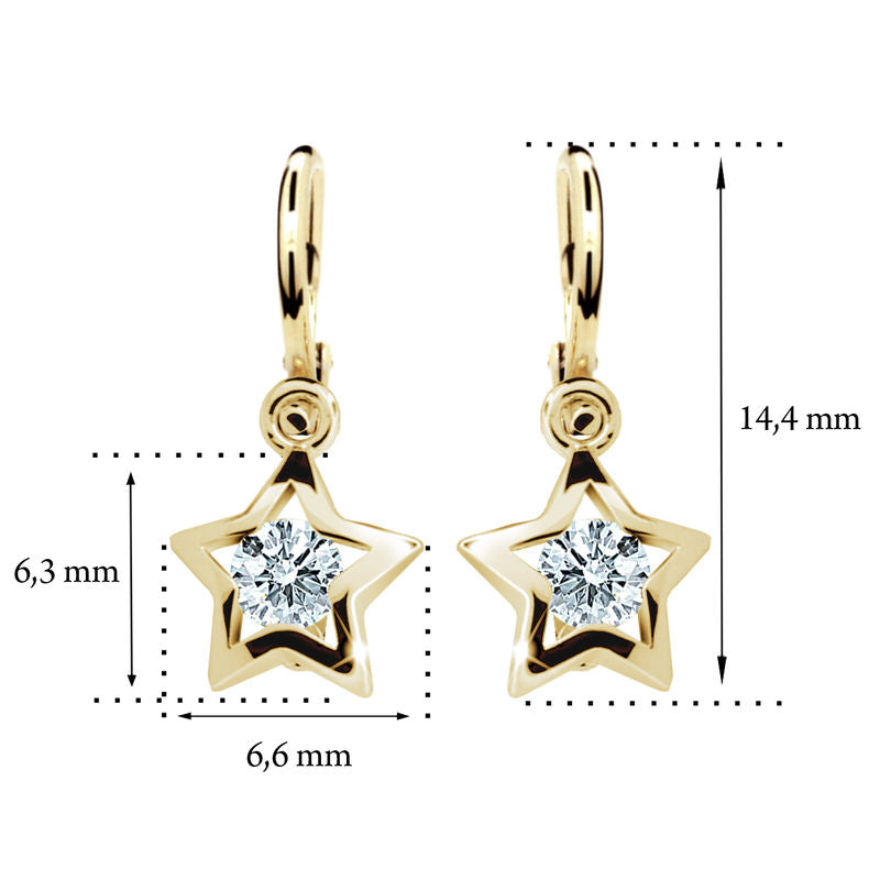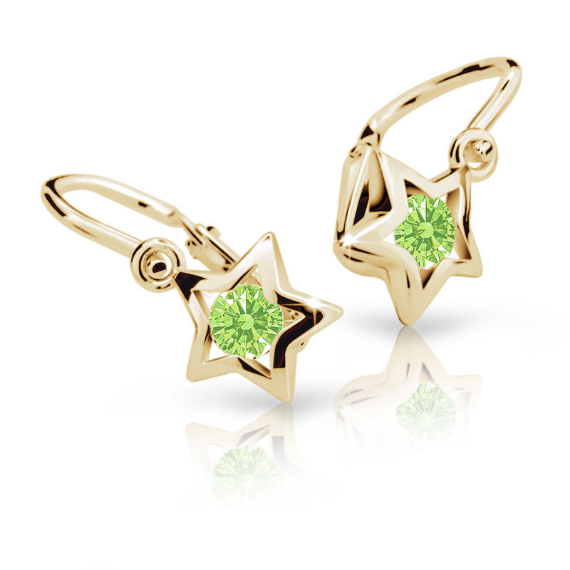 Detské náušnice Danfil hviezdičky C1942 zo žltého zlata, Peridot Green, zapínanie brizura