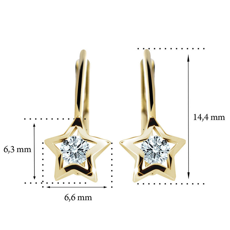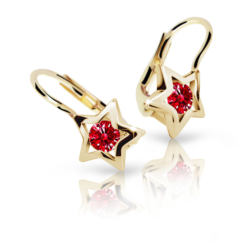 Detské náušnice Danfil hviezdičky C1942 zo žltého zlata, Ruby Dark, zapínanie klapka