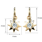 Detské náušničky v tvare hviezdičky so zapínaním typu brizúra sú vyrobené z žltého 14k zlata a osadené žltými kamienkami. Zlaté náušnice majú puncovú značku 585/1000 od štátneho puncového úradu. Tento typ zapínania považujeme za jeden z najbezpečnejších a je najvhodnejší ako prvé náušničky pre bábätko. Všetky rozmery sú podrobne rozkreslené na podpornej fotografii. Ku každým náušničkám je možné vybrať si aj ladiaci prívesok s retiazkou.