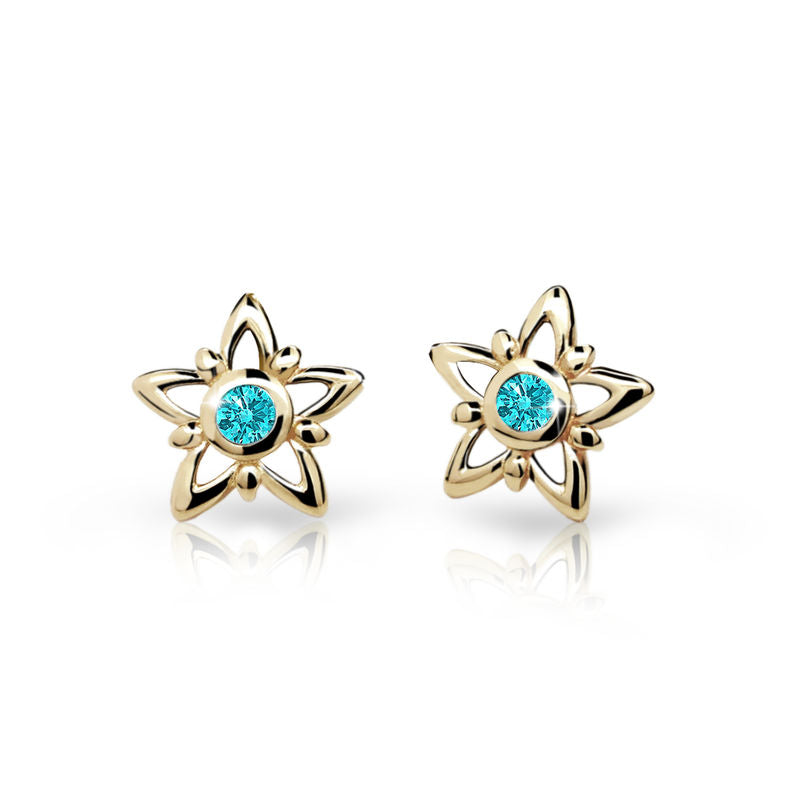 Detské náušnice Danfil hviezdičky C1996 zo žltého zlata, Mint Green, zapínanie puzeta