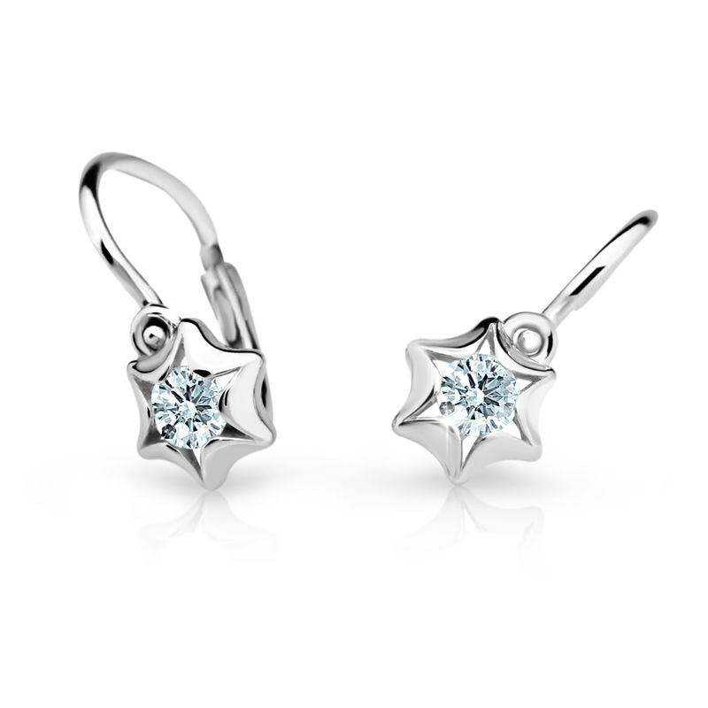 Detské náušnice Danfil hviezdičky C2159 z bieleho zlata, White, zapínanie brizura