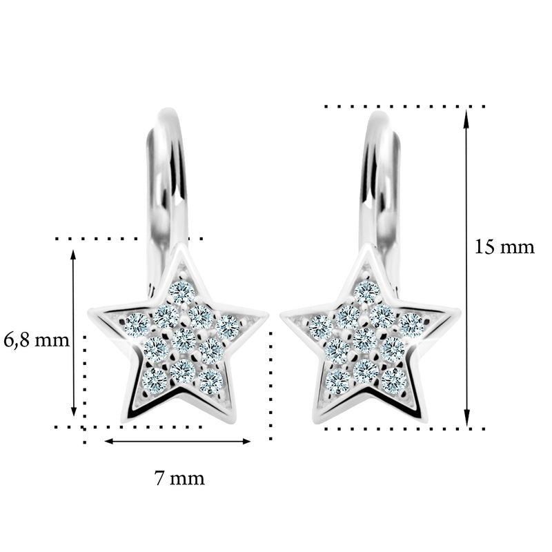 Detské náušničky v tvare hviezdičky so zapínaním typu klapka sú vyrobené z bieleho 14k zlata a osadené červenými zirkónmi. Zlaté náušnice majú puncovú značku 585/1000 od štátneho puncového úradu. Tento typ zapínania považujeme za jeden z najbezpečnejších a je najvhodnejší pre malé slečny vo veku od cca 5 rokov. Na tento typ zapínania je možné za príplatok umiestniť bezpečnosťou poistky. Všetky rozmery sú podrobne rozkreslené na podpornej fotografii. Ku každým náušničkám je možné vybrať si aj ladiaci prívesok s retiazkou.