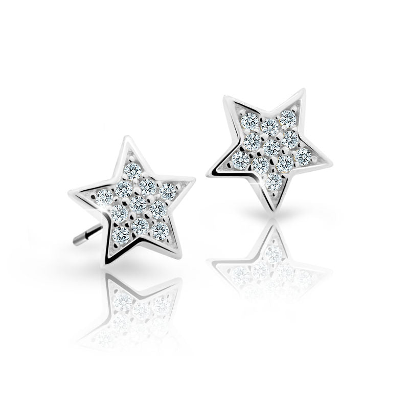 Detské náušnice Danfil hviezdičky C2228 z bieleho zlata, White, zapínanie puzeta