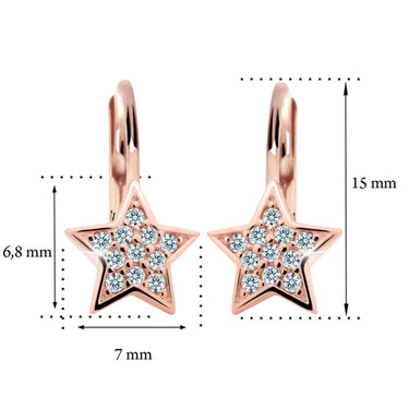 Detské náušnice Danfil hviezdičky C2228 zo ružového zlata, Ruby Dark, zapínanie klapka
