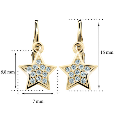 Detské náušnice Danfil hviezdičky C2228 zo žltého zlata, Ruby Dark, zapínanie brizura