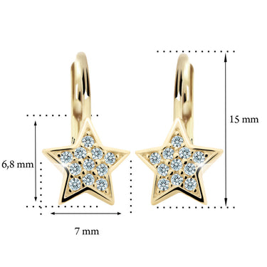 Detské náušnice Danfil hviezdičky C2228 zo žltého zlata, White, zapínanie klapka