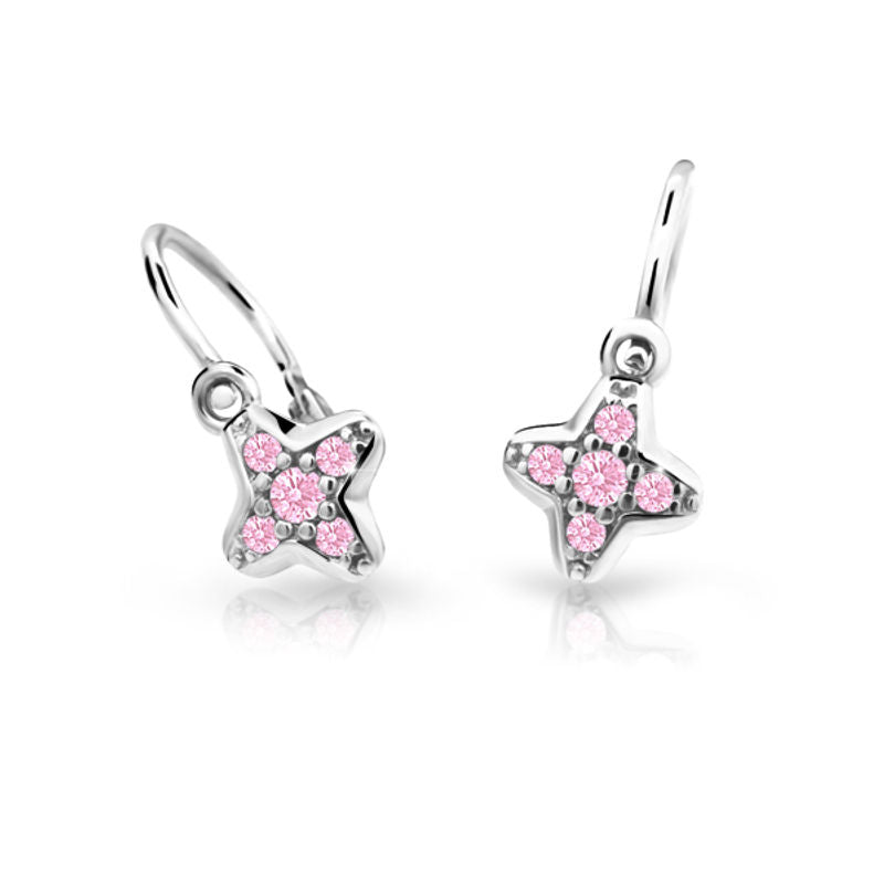 Detské náušnice Danfil hviezdičky C2266 z bieleho zlata, Pink, zapínanie brizura
