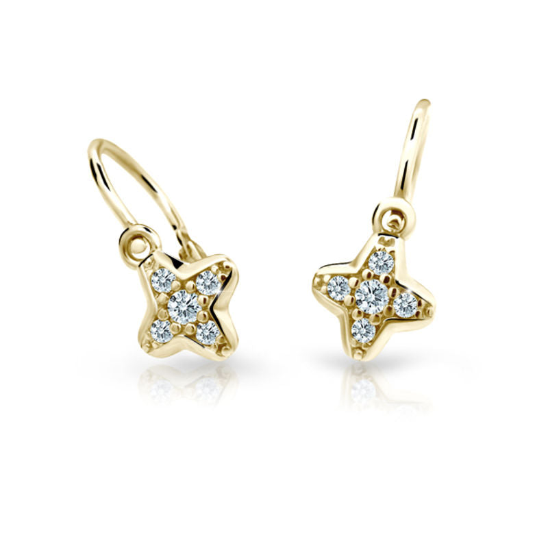 Detské náušnice Danfil hviezdičky C2266 zo žltého zlata, White, zapínanie brizura