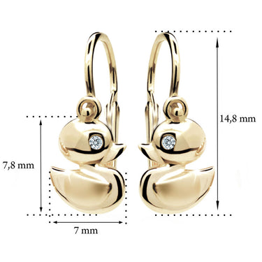 Detské náušnice Danfil kačičky C1954 zo žltého zlata, White, zapínanie brizura
