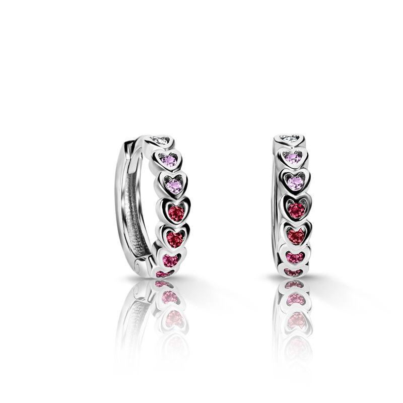 Dětské náušnice kroužky ze 14k zlata jsou tvořeny řadou srdíček se střídajícími se duhovými barvami zirkonů. Zlaté náušnice jsou opatřeny puncovní značkou 585/1000 od státního puncovního úřadu. Tento typ zapínání je velice pohodlný na nošení a je vhodný pro holčičky zhruba ve věku od 6 let. Veškeré rozměry jsou podrobně rozkresleny v podpurné fotografii.
