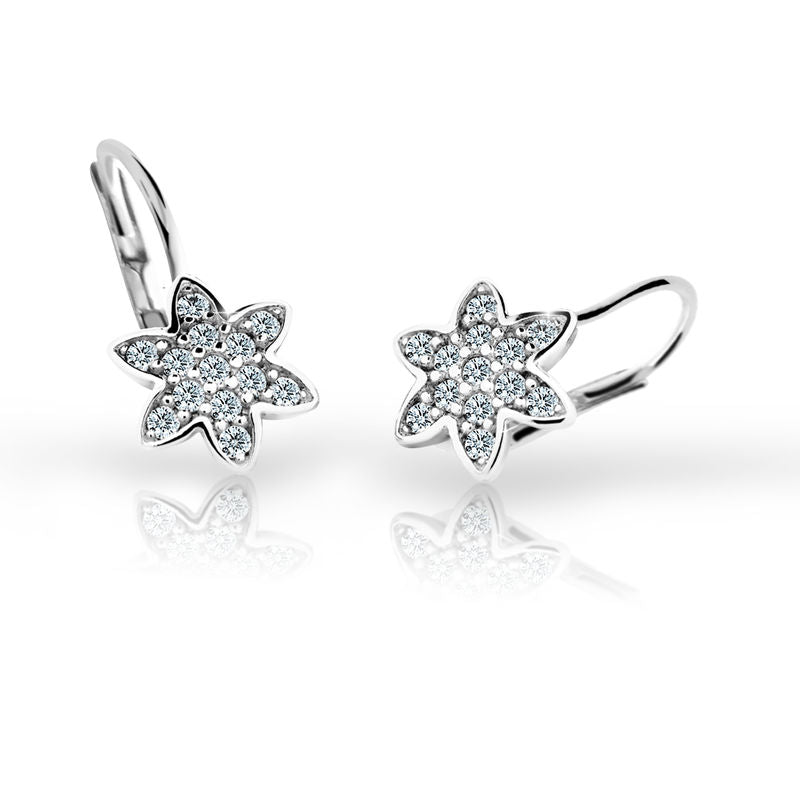 Detské náušnice Danfil kvetinky C2206 z bieleho zlata, White, zapínanie klapka