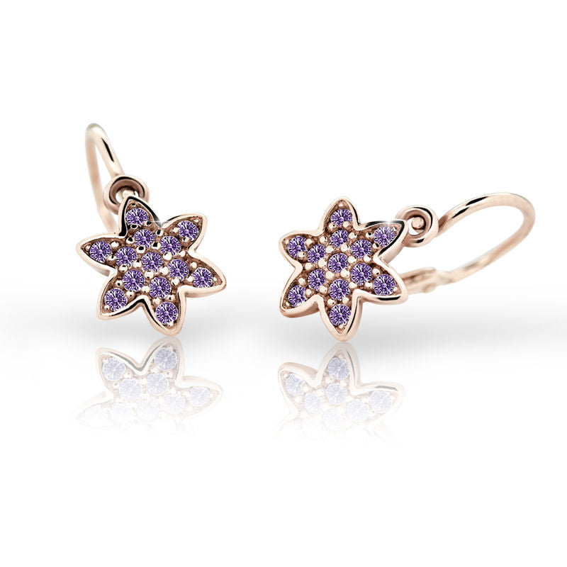 Detské náušnice Danfil kvetinky C2206 zo ružového zlata, Amethyst, zapínanie brizura
