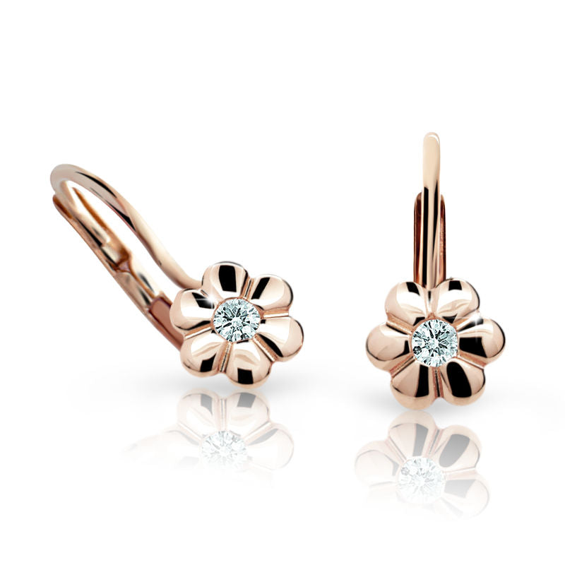 Detské náušnice Danfil kvetiny C1736 zo ružového zlata, White, zapínanie klapka