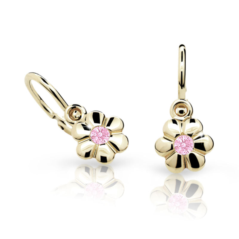 Detské náušnice Danfil kvetiny C1736 zo žltého zlata, Pink, zapínanie brizura