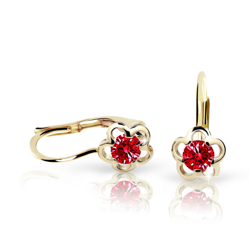 Detské náušnice Danfil kvetiny C1945 zo žltého zlata, Ruby Dark, zapínanie klapka