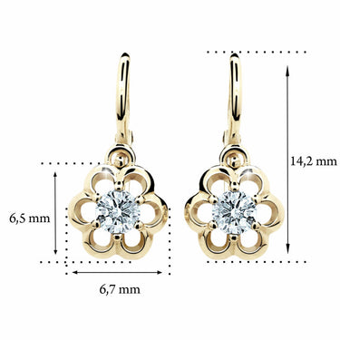 Detské náušnice Danfil kvetiny C1947 zo žltého zlata, Ruby Dark, zapínanie brizura