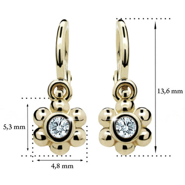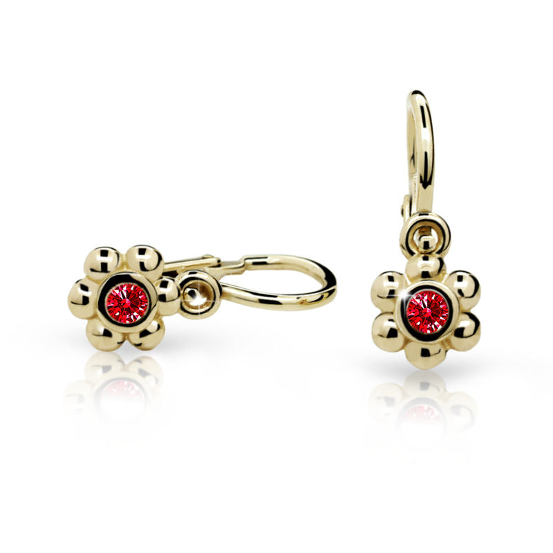 Detské náušnice Danfil kvetiny C2031 zo žltého zlata, Ruby Dark, zapínanie brizura