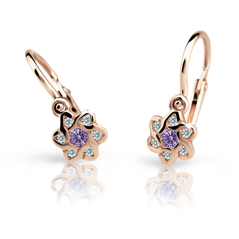Detské náušnice Danfil kvetiny C2149 zo ružového zlata, Amethyst, zapínanie brizura
