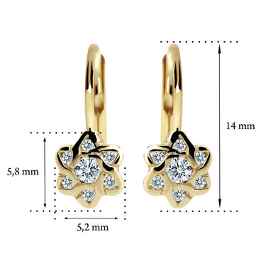 Detské náušnice Danfil kvetiny C2149 zo žltého zlata, White, zapínanie klapka