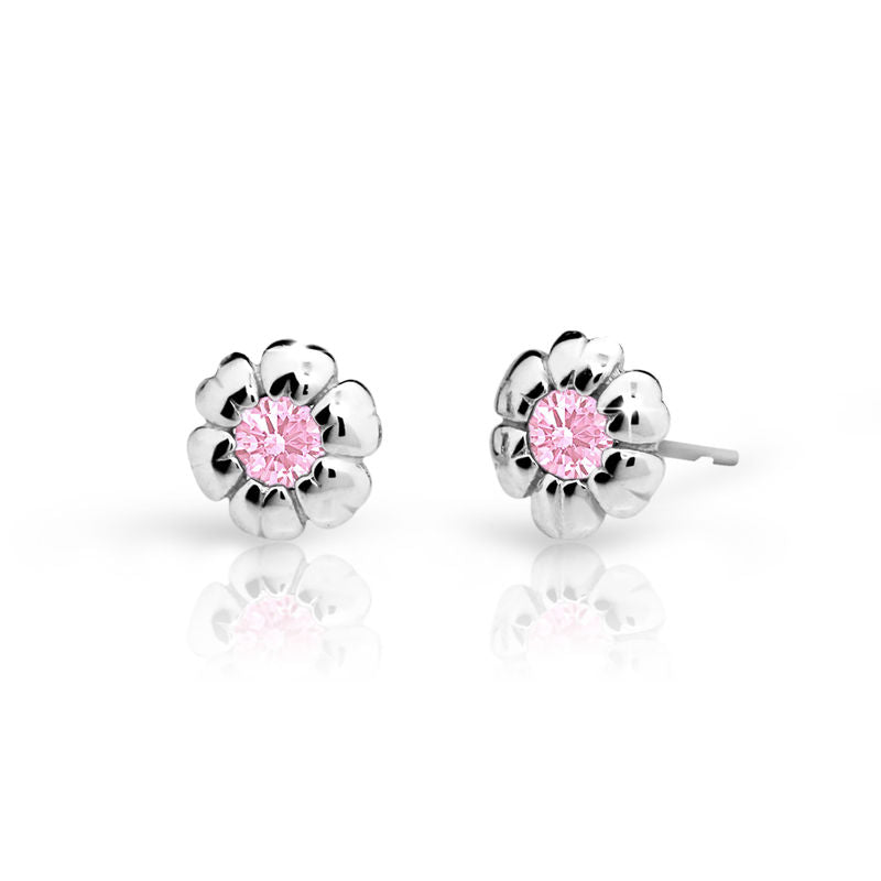 Detské náušnice Danfil kvetiny C2151 z bieleho zlata, Pink, zapínanie puzeta