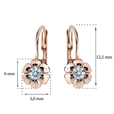 Detské náušnice Danfil kvetiny C2151 zo ružového zlata, Pink, zapínanie klapka