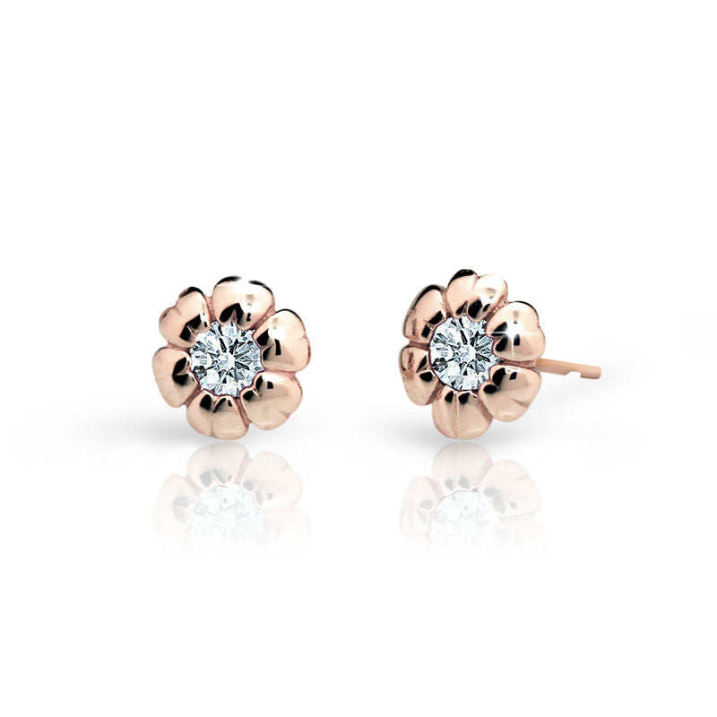Detské náušnice Danfil kvetiny C2151 zo ružového zlata, White, zapínanie puzeta