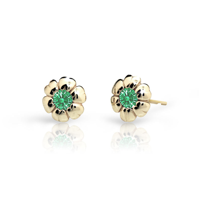 Detské náušnice Danfil kvetiny C2151 zo žltého zlata, Emerald Green, zapínanie balónik