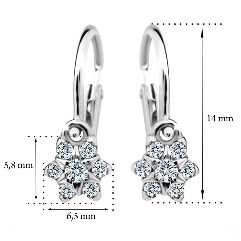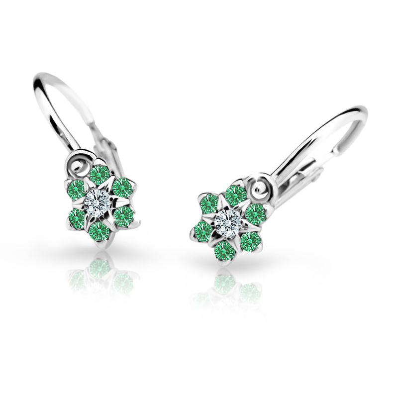 Detské náušnice Danfil kvetiny C2152 z bieleho zlata, Emerald Green, zapínanie brizura