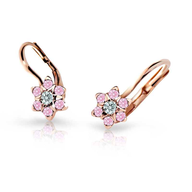 Detské náušnice Danfil kvetiny C2152 zo ružového zlata, Pink, zapínanie klapka