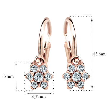 Detské náušnice Danfil kvetiny C2152 zo ružového zlata, Ruby Dark, zapínanie brizura