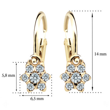Detské náušnice Danfil kvetiny C2152 zo žltého zlata, Peridot Green, zapínanie brizura