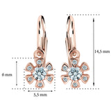 Detské náušničky v tvare kvetinky so zapínaním typu brizúra sú vyrobené z ružového 14k zlata a osadené tyrkysovými zirkónmi. Zlaté náušnice majú puncovú značku 585/1000 od štátneho puncového úradu. Tento typ zapínania považujeme za jeden z najbezpečnejších a je najvhodnejší ako prvé náušničky pre bábätko. Všetky rozmery sú podrobne rozkreslené na podpornej fotografii. Ku každým náušničkám je možné vybrať si aj ladiaci prívesok s retiazkou.