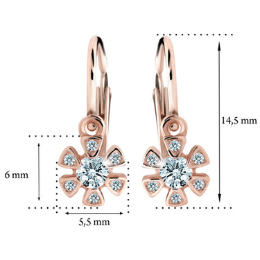 Detské náušnice Danfil kvetiny C2156 zo ružového zlata, Mint Green, zapínanie brizura