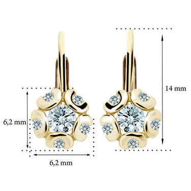 Detské náušnice Danfil kvetiny C2178 zo žltého zlata, Ruby Dark, zapínanie klapka