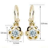 Detské náušničky v tvare kvetinky so zapínaním typu brizúra sú vyrobené z žltého 14k zlata a osadené červenými zirkónmi. Zlaté náušnice majú puncovú značku 585/1000 od štátneho puncového úradu. Tento typ zapínania považujeme za jeden z najbezpečnejších a je najvhodnejší ako prvé náušničky pre bábätko. Všetky rozmery sú podrobne rozkreslené na podpornej fotografii. Ku každým náušničkám je možné vybrať si aj ladiaci prívesok s retiazkou.