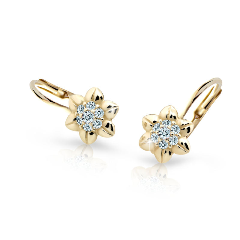Detské náušnice Danfil kvetiny C2202 zo žltého zlata, White, zapínanie klapka
