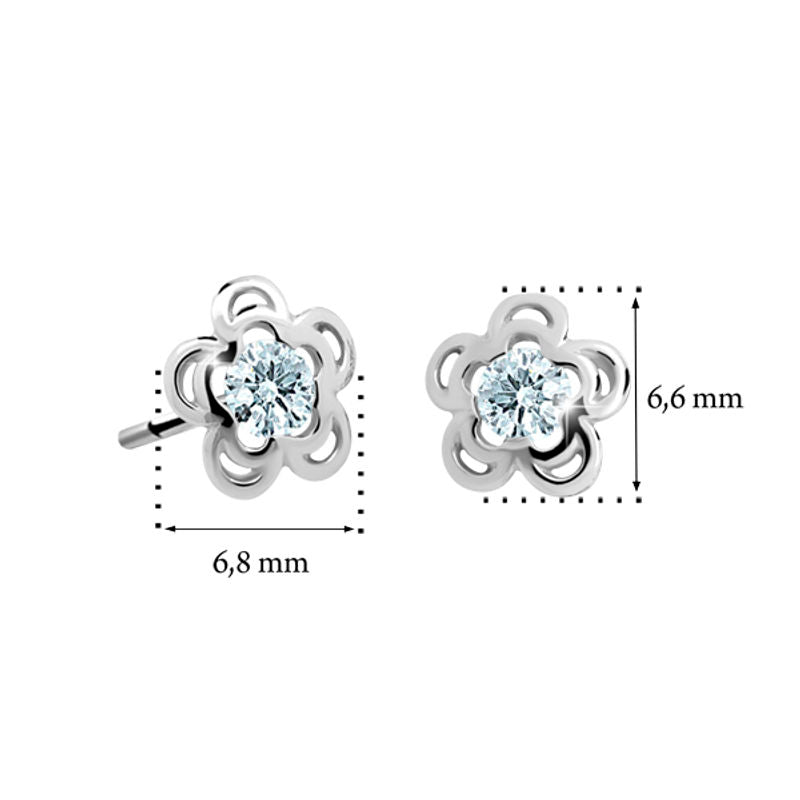 Detské náušnice Danfil kvetiny C2204 z bieleho zlata, Mint Green, zapínanie puzeta