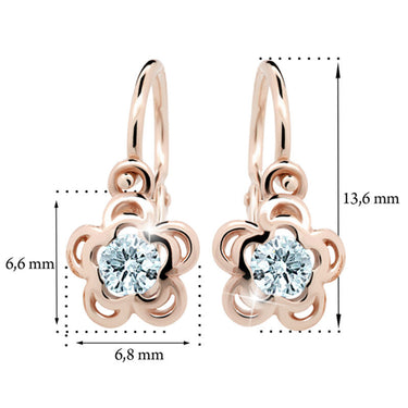 Detské náušnice Danfil kvetiny C2204 zo ružového zlata, White, zapínanie brizura